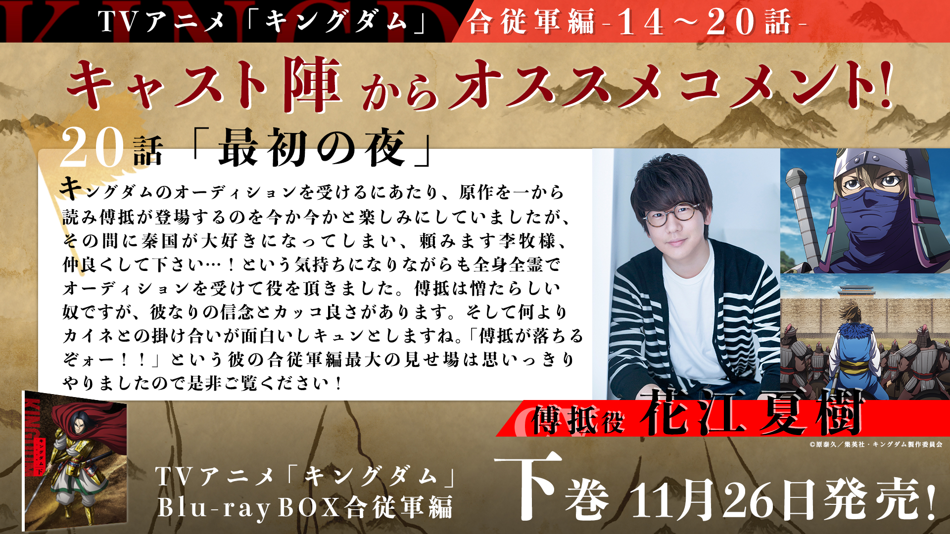 キングダム 情熱大陸で花江夏樹さんのキングダム出演が確定! 傅抵(ふてい)役か? 年11月23日 / 22年4月18日 11月22日(日)午後11時より放送の「情熱大陸」に「鬼滅の